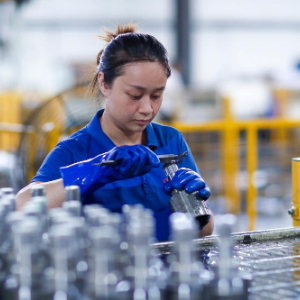 9月16日,在江苏省兴化市陈堡镇的江苏海宇机械有限公司生产车间内,工人对产品进行抽检作业。