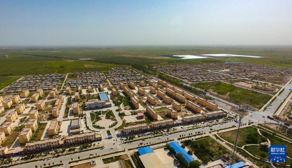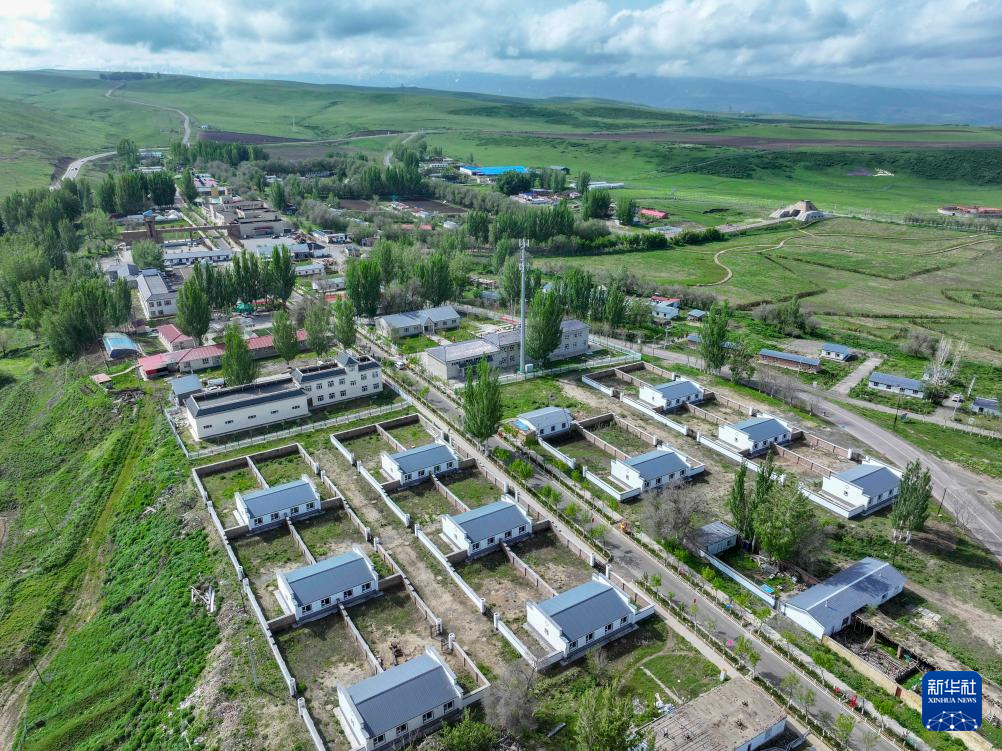 这是2024年5月13日拍摄的新疆生产建设兵团第十二师西山农牧场的小区(无人机全景照片)。