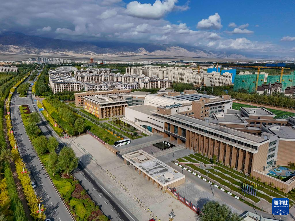建设中的新疆生产建设兵团第十三师新星市城区(2024年9月9日摄,无人机照片)。