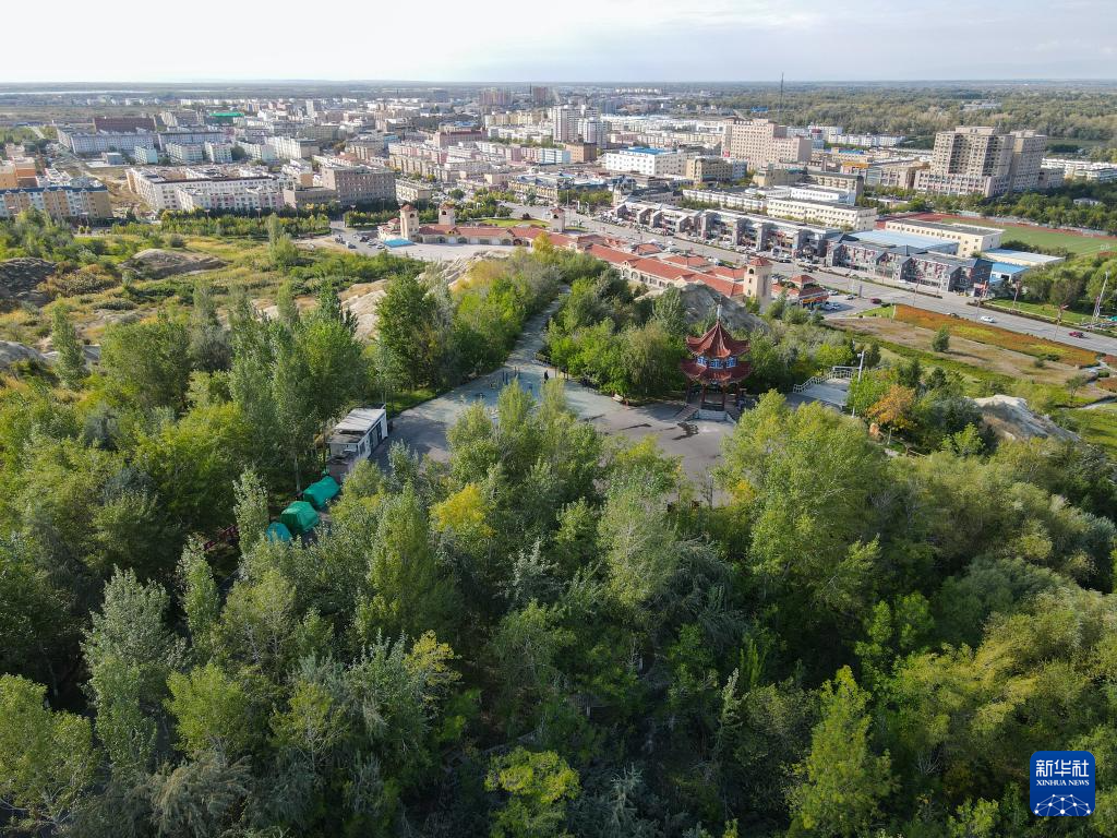 这是2024年9月12日拍摄的新疆生产建设兵团第十师北屯市城区一角(无人机照片)。
