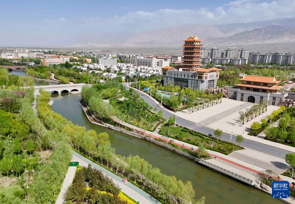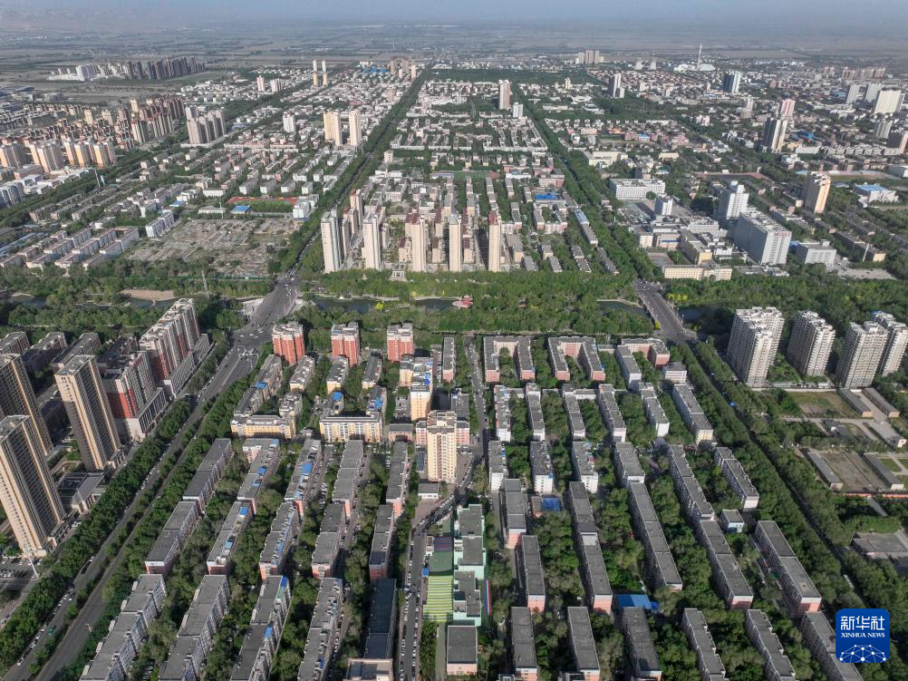 这是2024年5月9日拍摄的新疆生产建设兵团第六师五家渠市城区(无人机照片)。