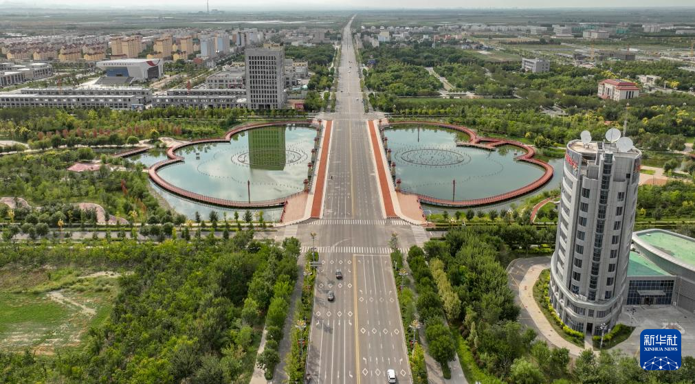 这是2024年9月9日拍摄的新疆生产建设兵团第十三师新星市城区一角(无人机照片)。