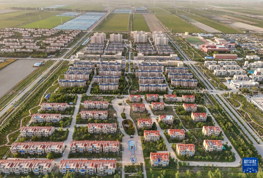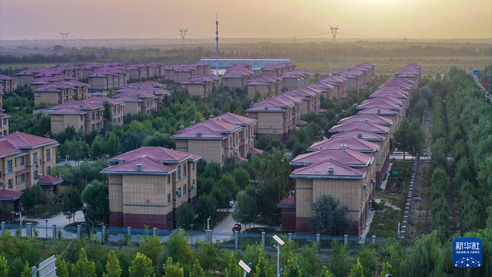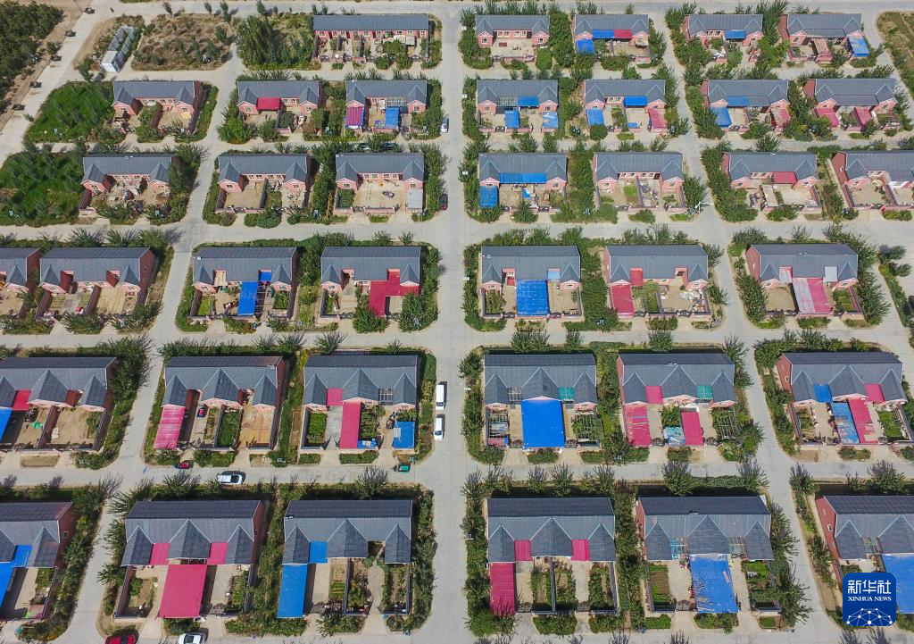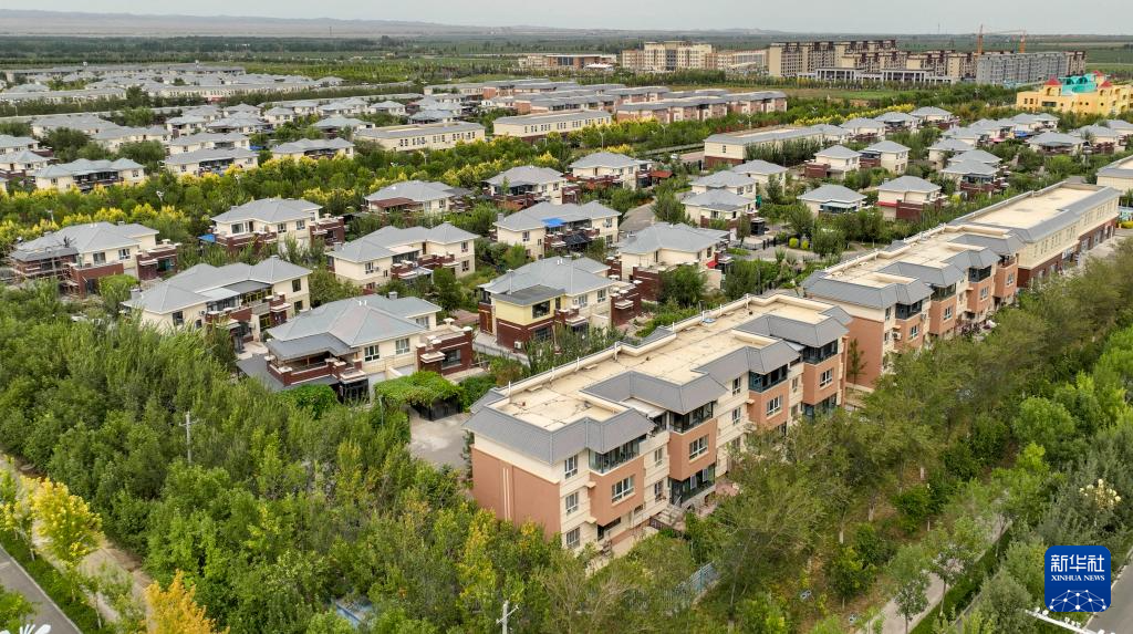 这是2024年9月4日拍摄的新疆生产建设兵团第十四师昆玉市七十四团老兵镇的一处小区(无人机照片)。