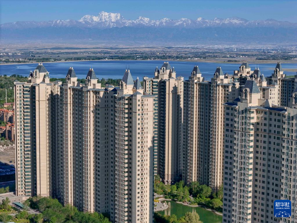 这是2024年8月27日拍摄的新疆生产建设兵团第五师双河市城区的一处小区(无人机照片)。
