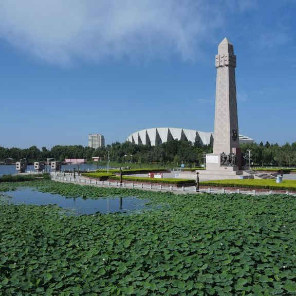 这是2023年8月8日拍摄的新疆生产建设兵团第一师阿拉尔市的三五九旅纪念馆(无人机照片)。