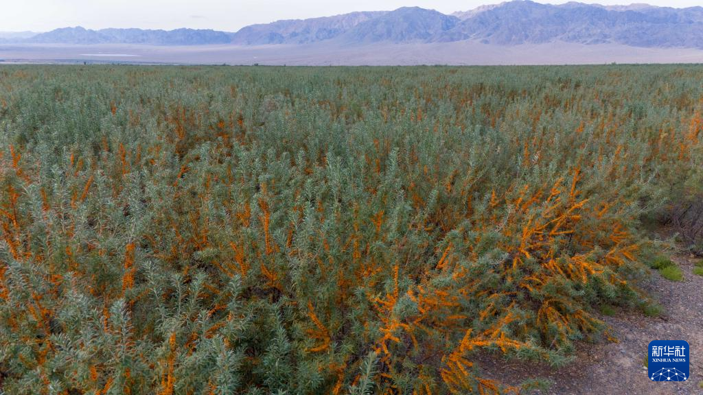 这是2024年9月10日在新疆生产建设兵团第九师白杨市170团拍摄的沙棘种植地(无人机照片)。