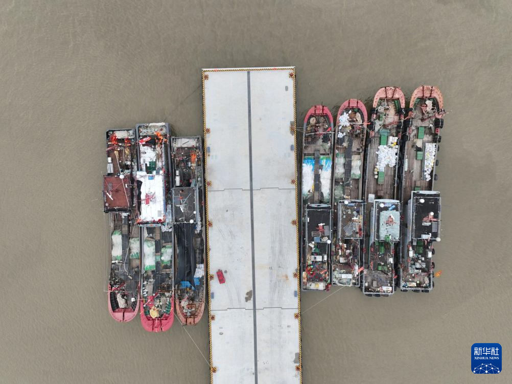 9月16日,中铁十六局的工人在黄沙港进行疏浚作业(无人机照片)。