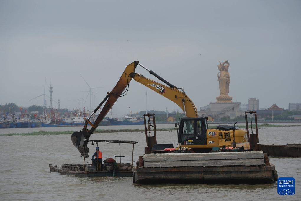 9月16日,工人在黄沙港施放浮标(无人机照片)。