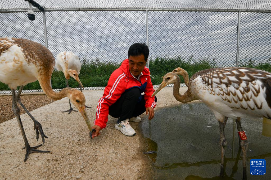 今年,丹顶鹤繁育创下历史新高,通过人工+自然繁育相结合的方式,赵仕伟和同事们共繁育雏鹤86只。