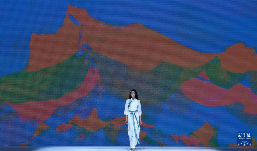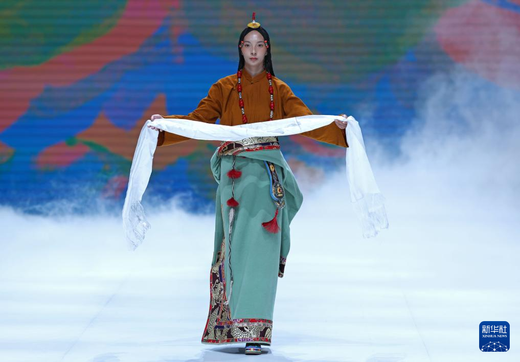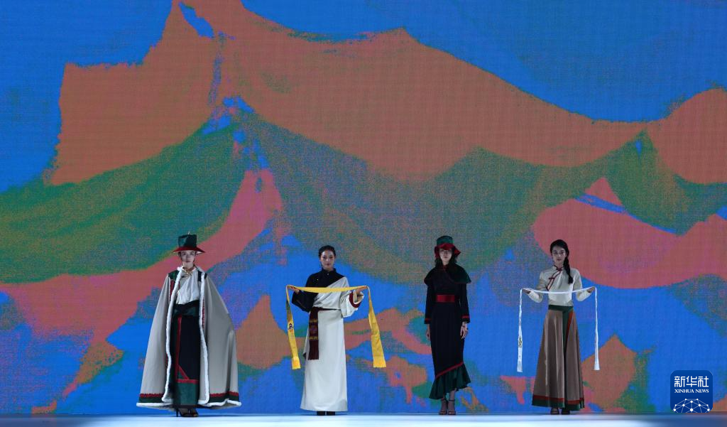 9月17日,模特在闭幕秀上展示玉树地区设计师设计的藏族服饰。