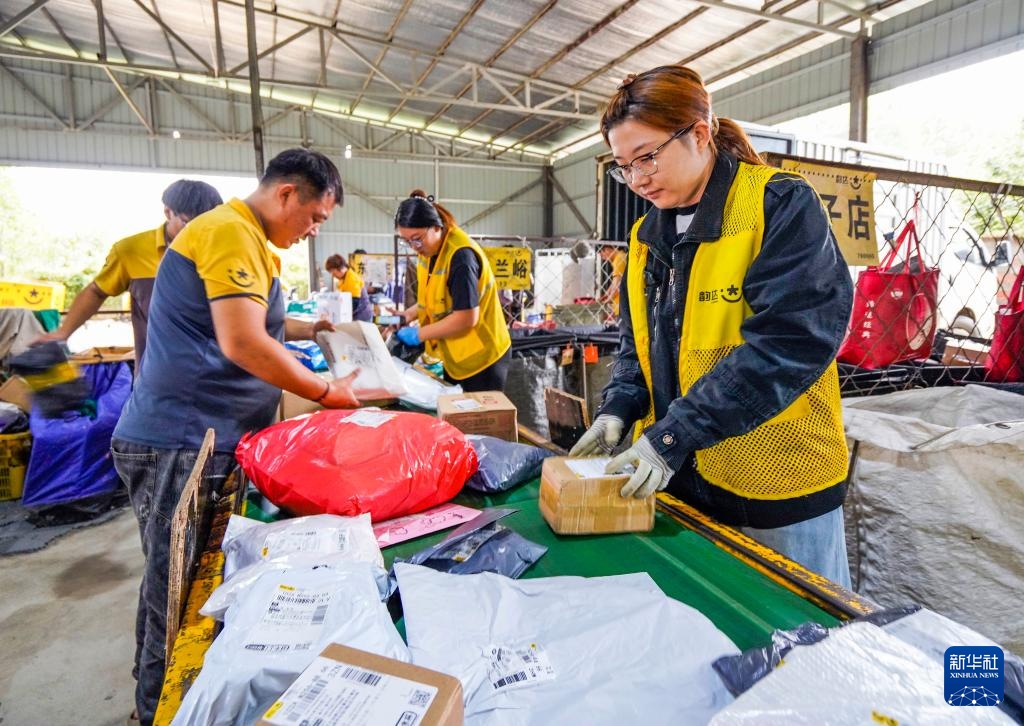 9月17日,工作人员在河北省遵化市一家快递公司分拣车间工作。