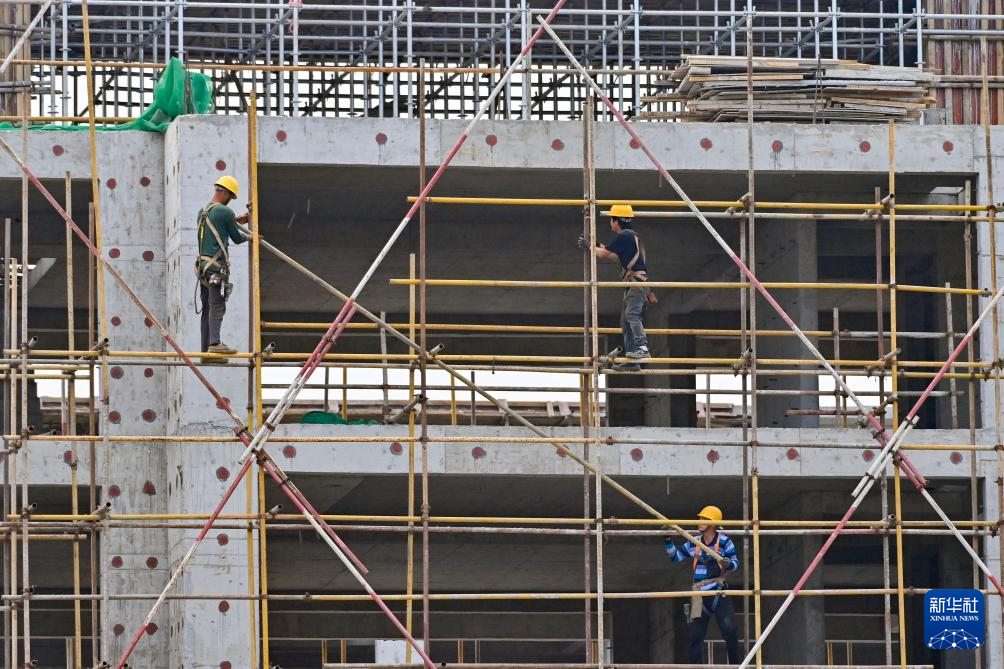 9月17日,建筑工人在福建省南平市武夷新区创业园三期建设工地施工。