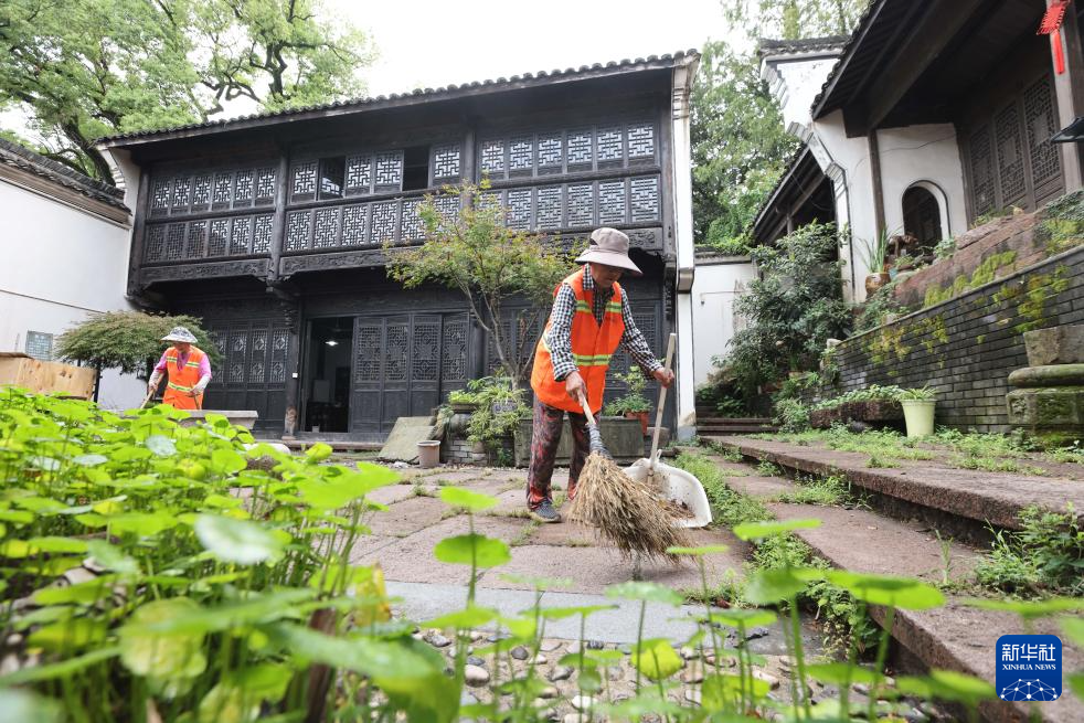 9月17日,环卫工人在浙江省湖州市德清县乾元镇清扫保洁。