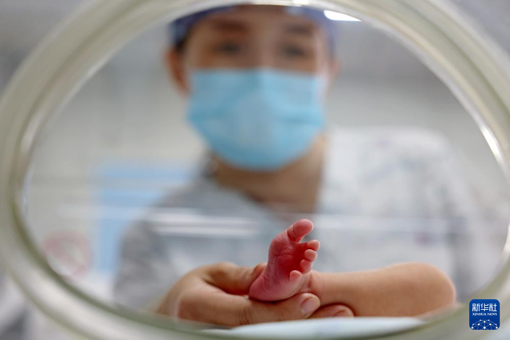 9月17日,医护人员在山东省枣庄市妇幼保健院护理新生儿。