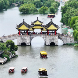 9月17日,游客在江苏扬州瘦西湖风景区游玩(无人机照片)。