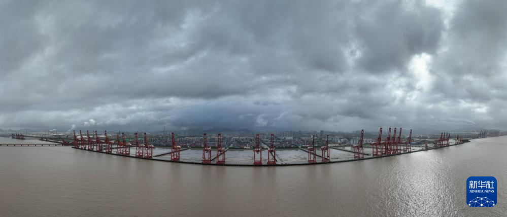 9月19日,在宁波舟山港,船舶进入安全水域避风(无人机照片)。
