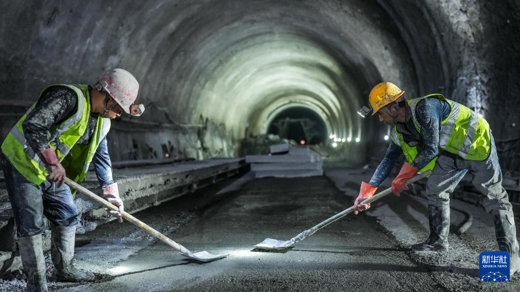 9月19日,工人在武道高速子母岩特长隧道内进行施工。