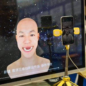9月20日,在新疆国际会展中心举行的新疆数字丝路博览会现场,参观者在体验照片3D建模和动作捕捉技术。