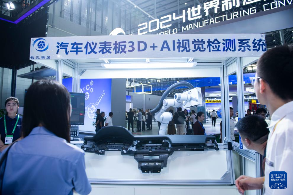 9月20日,观众在2024世界制造业大会展馆内了解汽车仪表板3D+AI视觉检测系统。