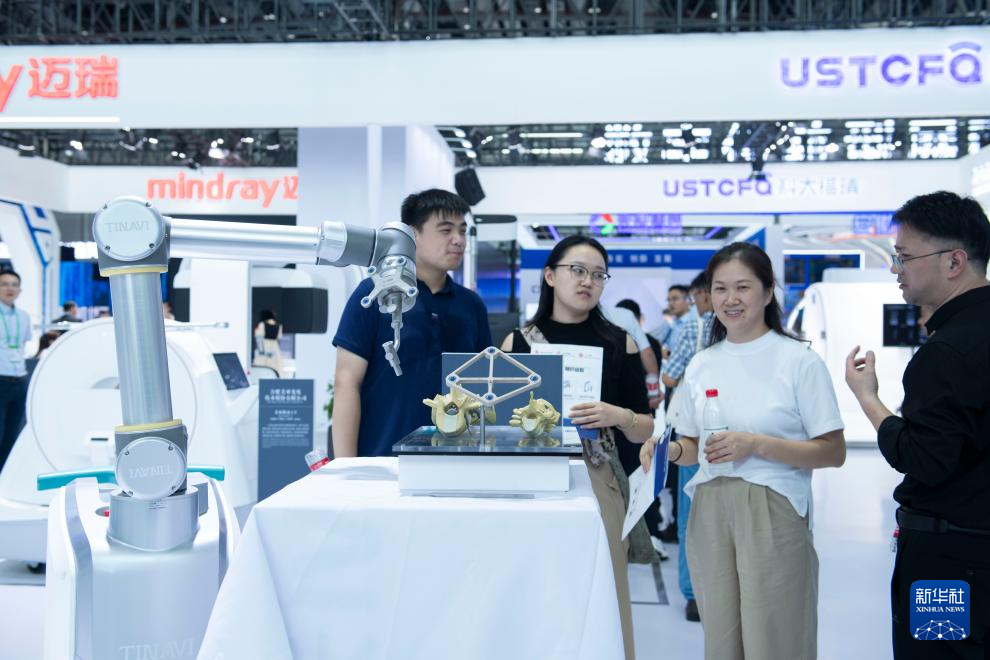 9月20日,观众在2024世界制造业大会展馆内了解一款医疗机器人。