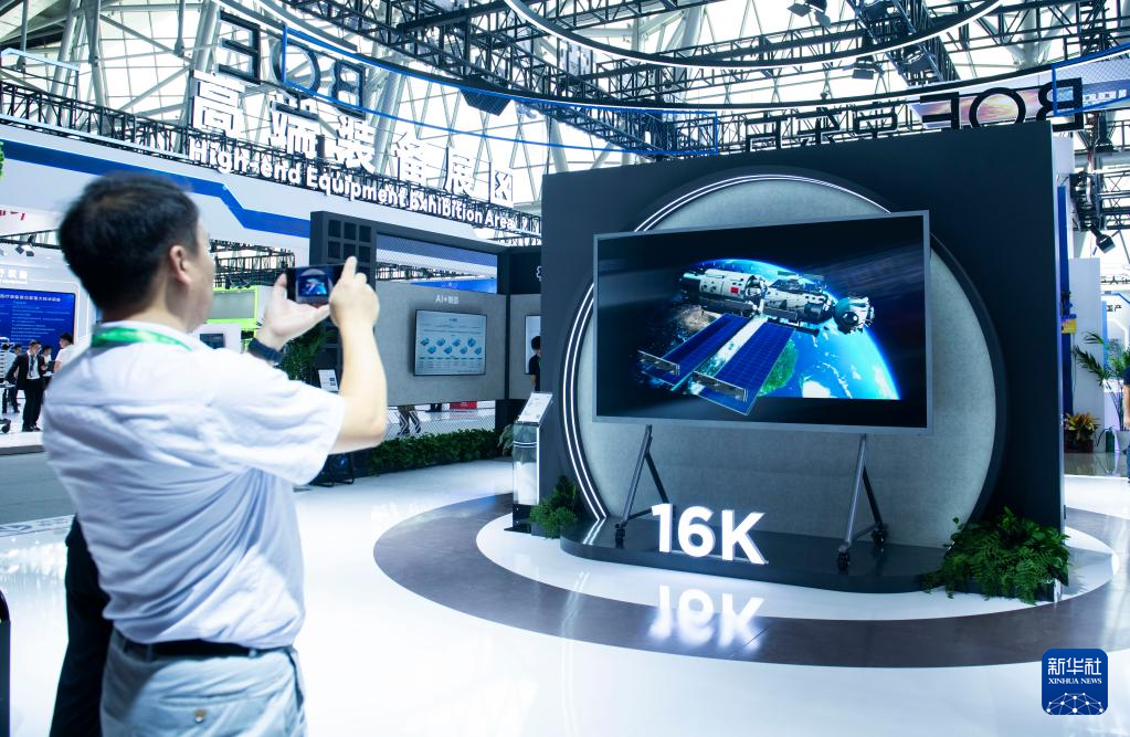 9月20日,观众在2024世界制造业大会展馆内了解16K裸眼3D屏幕。