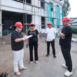 9月20日,诸暨市人大代表周叶芳(左一)、同山镇人大代表许丽红(左二)在同山镇唐仁村便民综合服务体项目建设工地调研。
