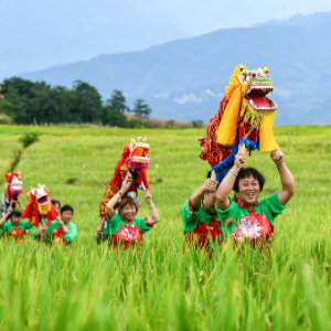 近日,位于云南省红河哈尼族彝族自治州个旧市卡房镇的旱地优质稻种植示范区迎来收获季。当地开展民俗表演、割谷比赛等活动庆祝丰收。