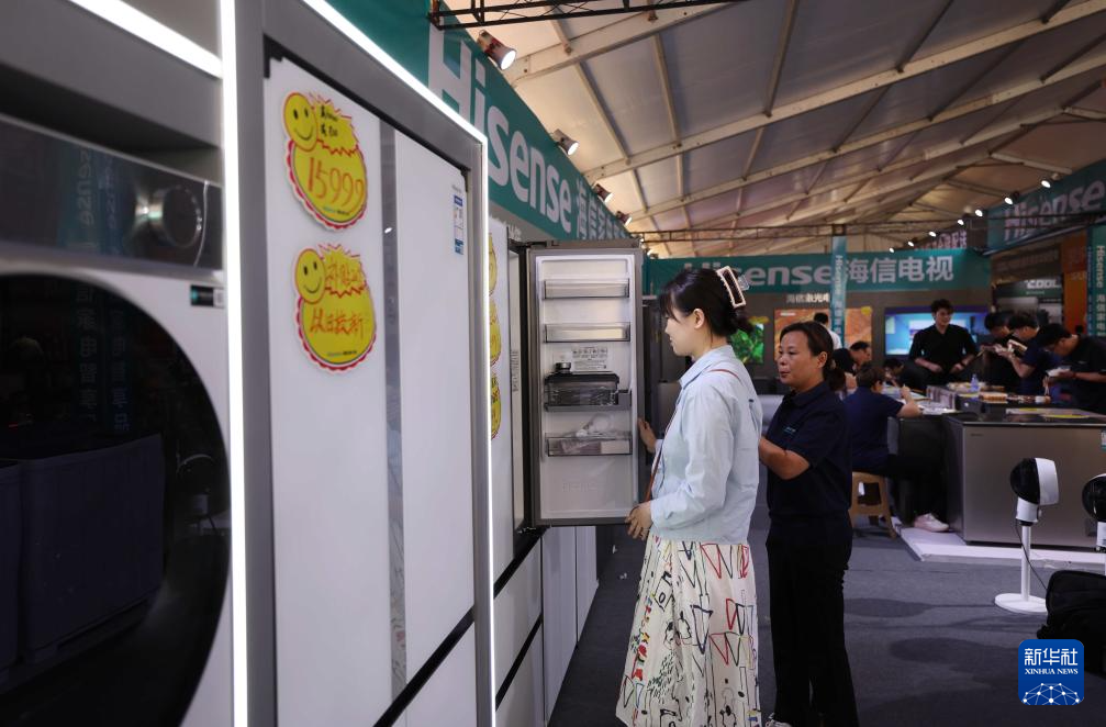 9月21日,在山东省滕州市举办的家博会上,市民在选购家用电器。