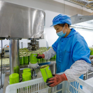 9月21日,在山东省滕州市张汪呱呱鸭业股份有限公司,工人们在给鸭制品进行充氮包装。