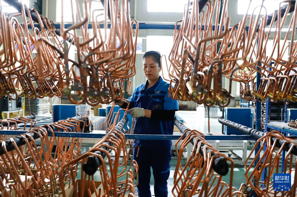 9月21日,在山东省滕州市中科蓝天科技有限公司,工人正在分拣四通阀。