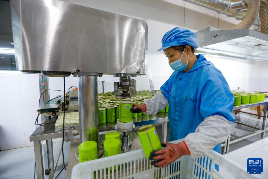9月21日,在山东滕州传化公路港内,一家茶叶企业的员工在包装茶叶。