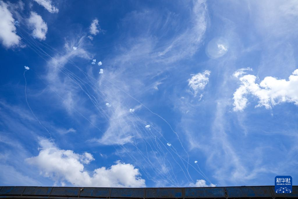 9月20日,在黎以边境以色列一侧,以军防空系统拦截来袭的火箭弹。