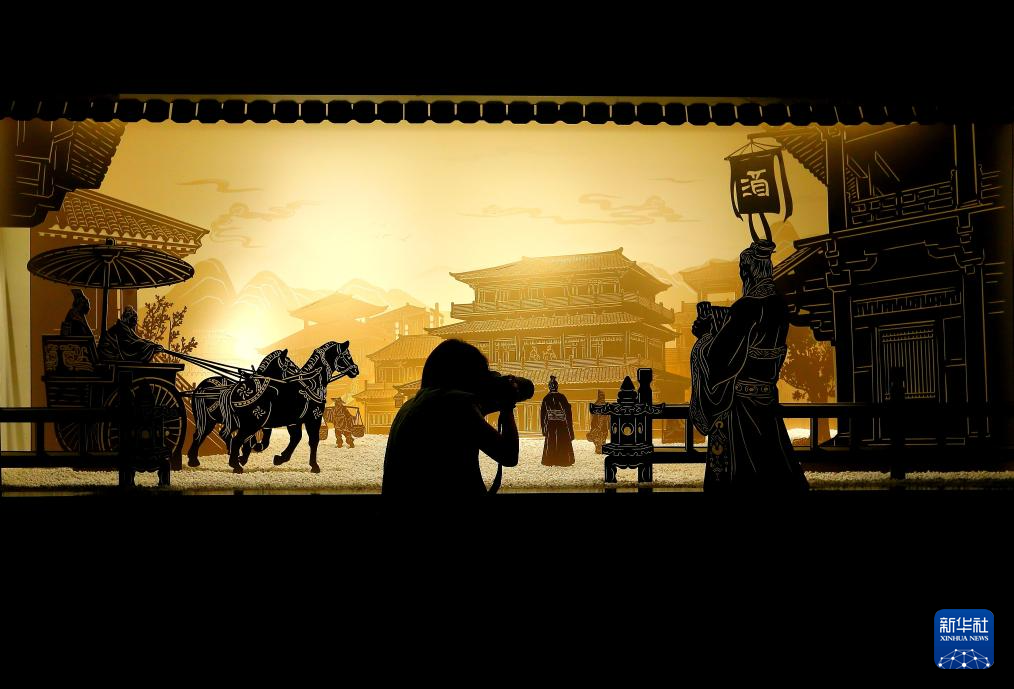 9月21日,游客在山东省滕州市汉画像石馆参观拍摄。