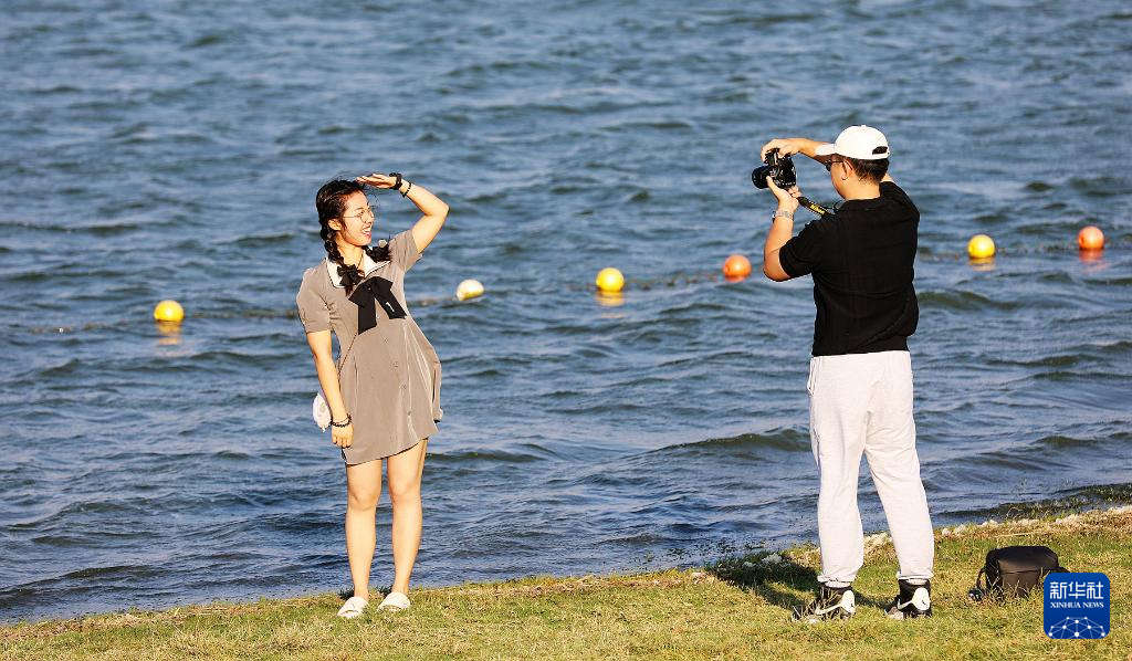 9月21日,游客在滕州市“龙湖月色”乡村振兴示范区望湖公园游玩。