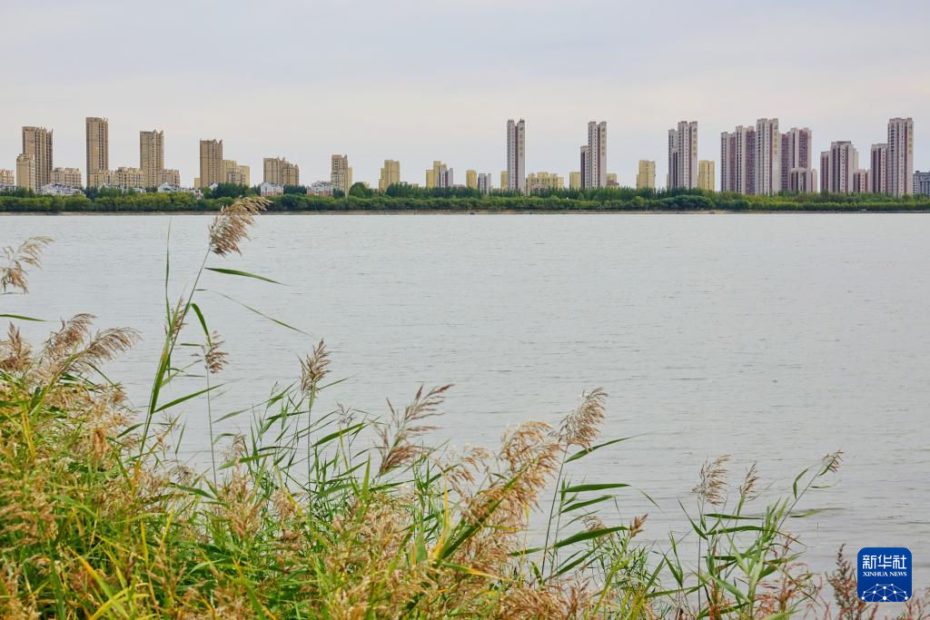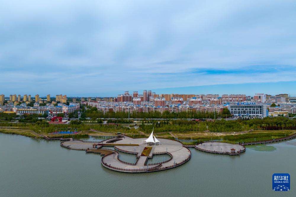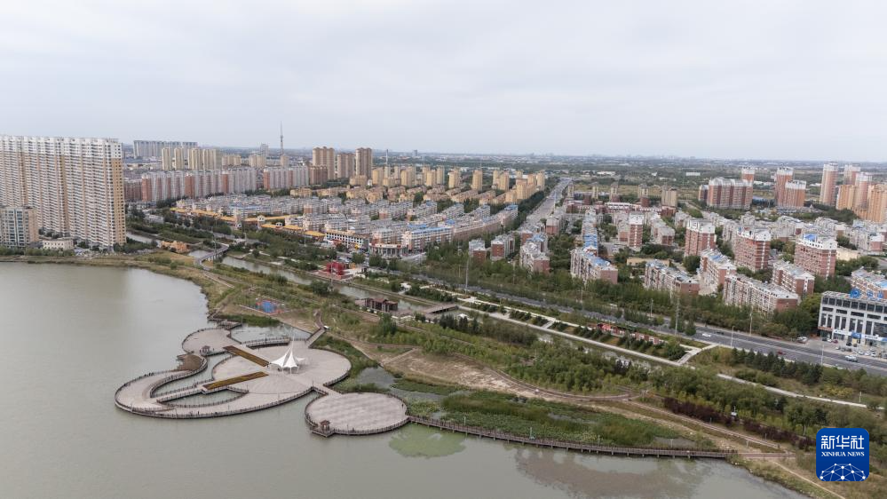 这是9月20日拍摄的大庆市滨洲湖和滨水绿道(无人照片)。