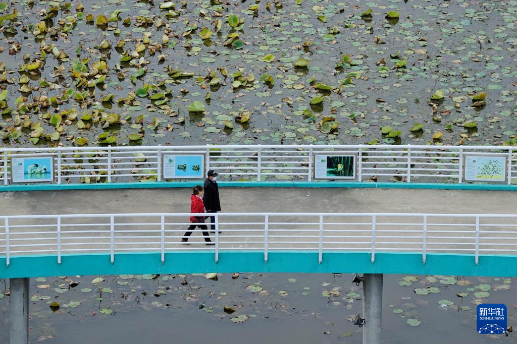 9月20日,市民在黑龙江省大庆市龙凤湿地游览。