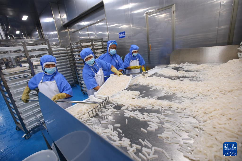 9月21日,滕州市集索镇山东启腾生物科技有限公司的工人在车间加工食品。