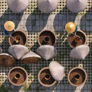 9月21日,滕州市善南街道山东福藤食品有限公司的工人在蒸料车间对稻壳做降温处理。