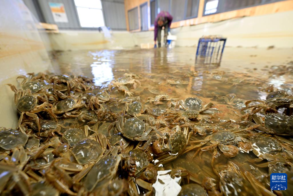 9月20日,工作人员在位于宁夏银川市贺兰县立岗镇永兴村的宁夏虾蟹集散中心内分拣稻田蟹。