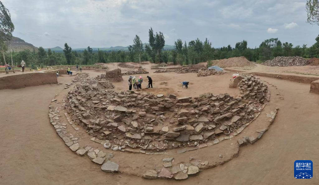 元宝山积石冢遗址发掘全景(资料照片)。