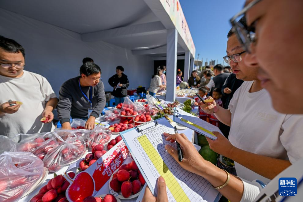 9月22日,评委们对通辽市各类锦绣海棠果进行评比。