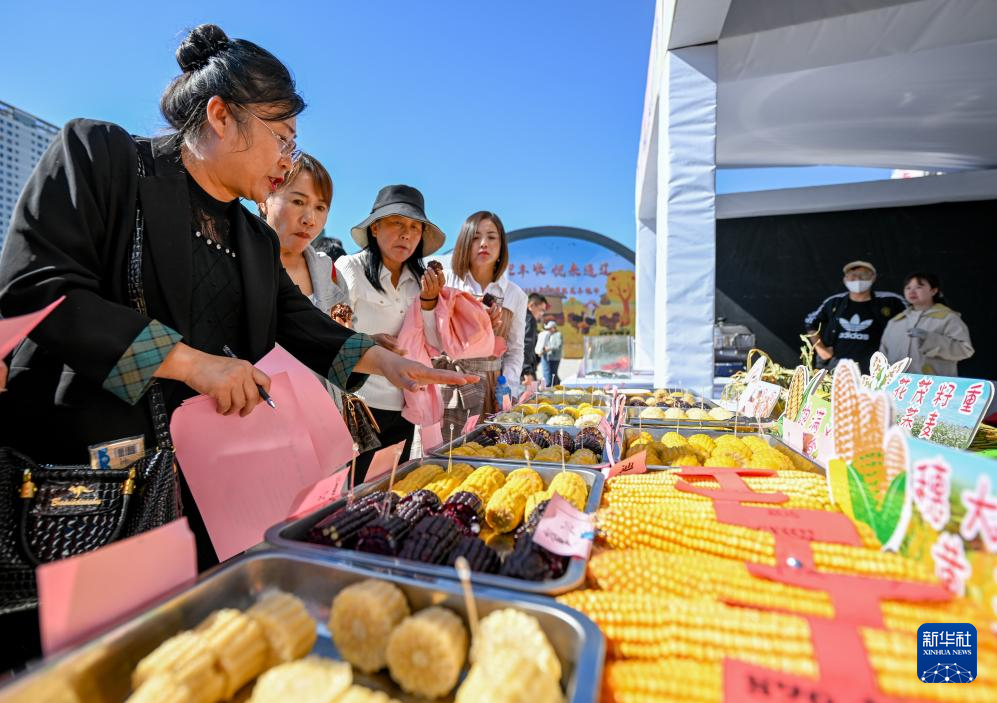 9月22日,评委们对各类玉米进行评比。