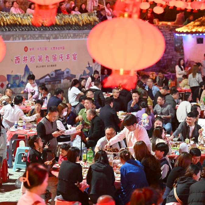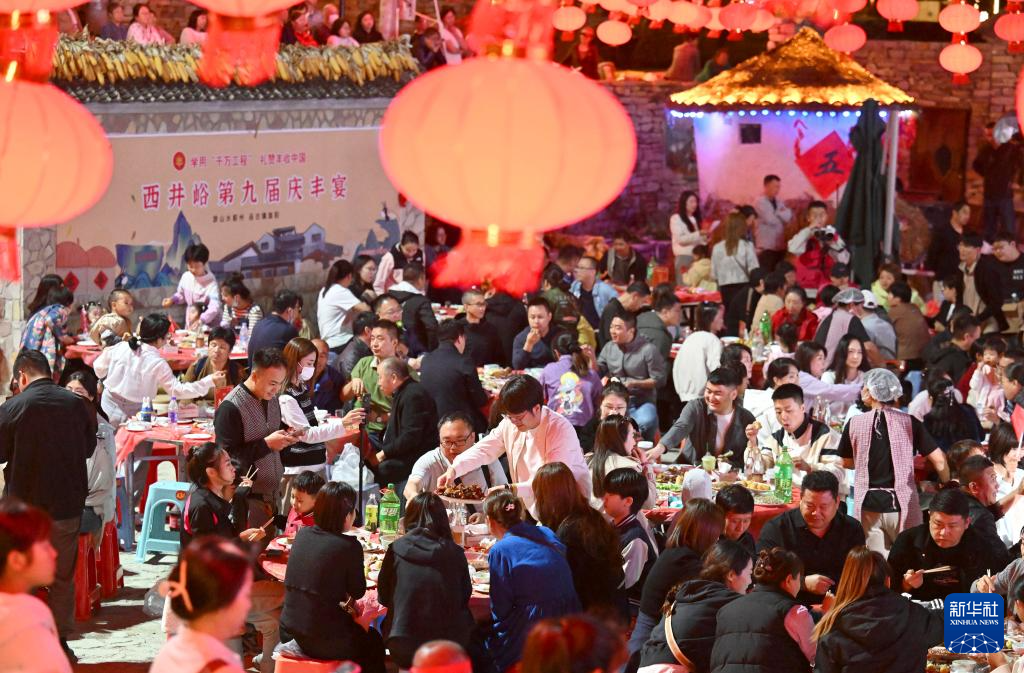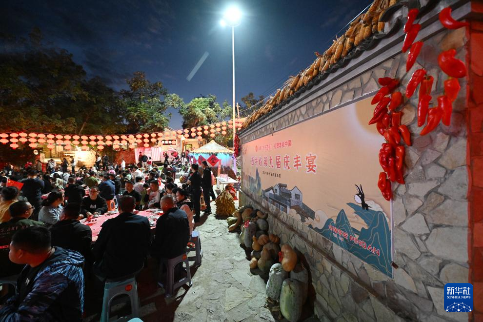9月21日晚,天津市蓟州区西井峪村举办庆丰宴迎接中国农民丰收节的到来。当地村民和游客欢聚一堂,品尝农家美食,观看特色演出,感受乡村风情。