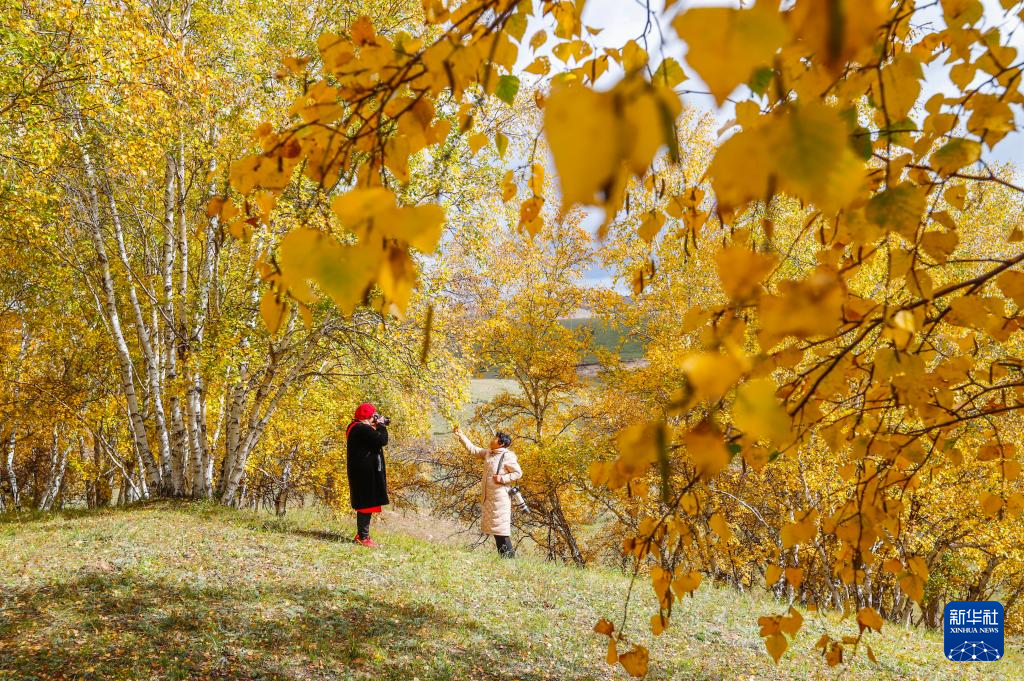 9月21日,游人在河北省承德市围场满族蒙古族自治县坝上草原游玩拍照。