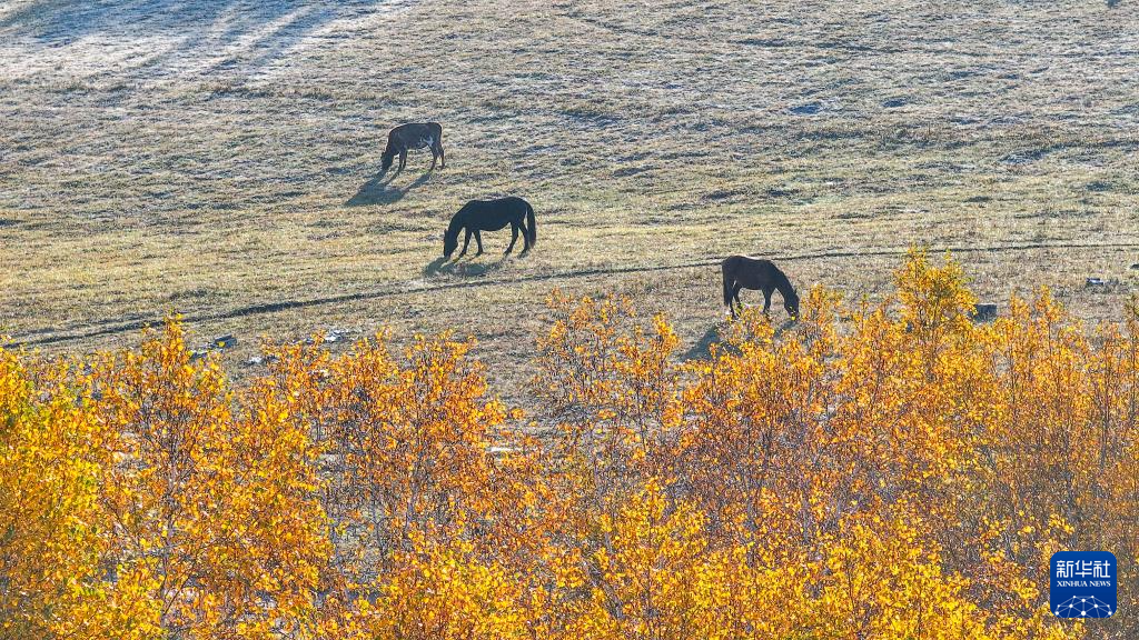 9月21日拍摄的内蒙古呼伦贝尔额尔古纳湿地秋景(无人机照片)。