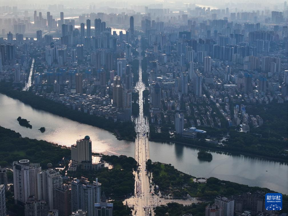 这是9月22日拍摄的南宁市南湖公园及城市建筑群(无人机照片)。