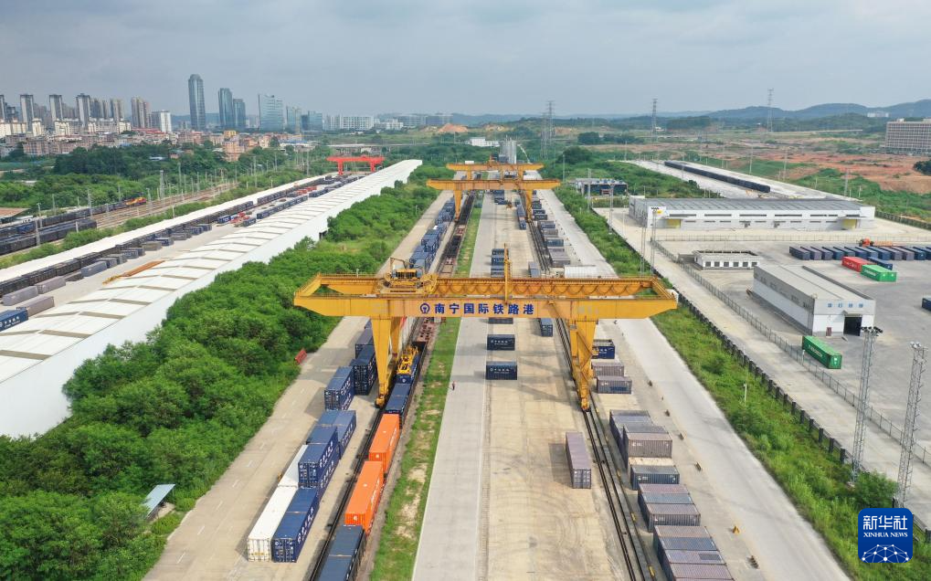 这是9月21日拍摄的南宁国际铁路港(无人机照片)。
