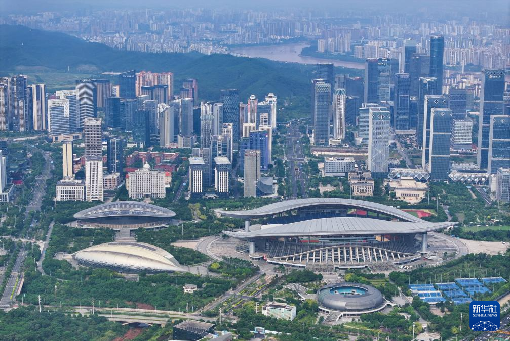 这是9月18日拍摄的广西体育中心及城市建筑群(无人机照片)。