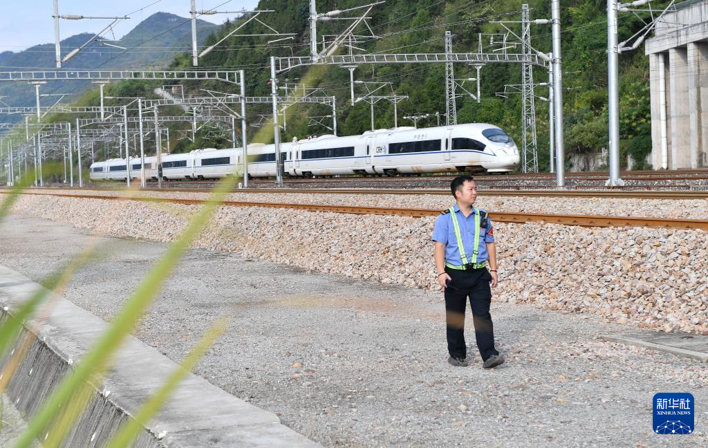 9月19日,禾家村站站长张晓东在巡查线路。