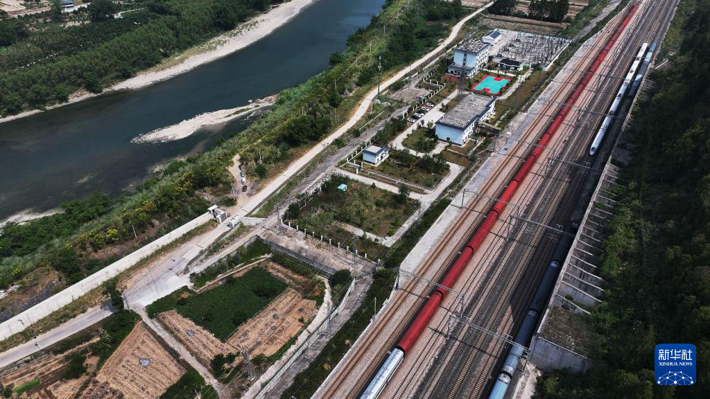 9月19日,高铁与普快列车同时经过禾家村站(无人机照片)。